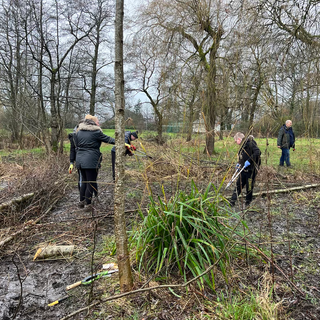 Today the NEWT crew were joined by Paul, Nieve and James to squelch around in mud laying an overgrown section of Alder trees that had encrouched into the lodge. Leverhulme Park was the venue, just on the lodge near Blenheim Road. Alder can become very invasive if not carefully managed but it can also be beneficial for birds such as the Goldfinch that feed on it's early produced seeds.